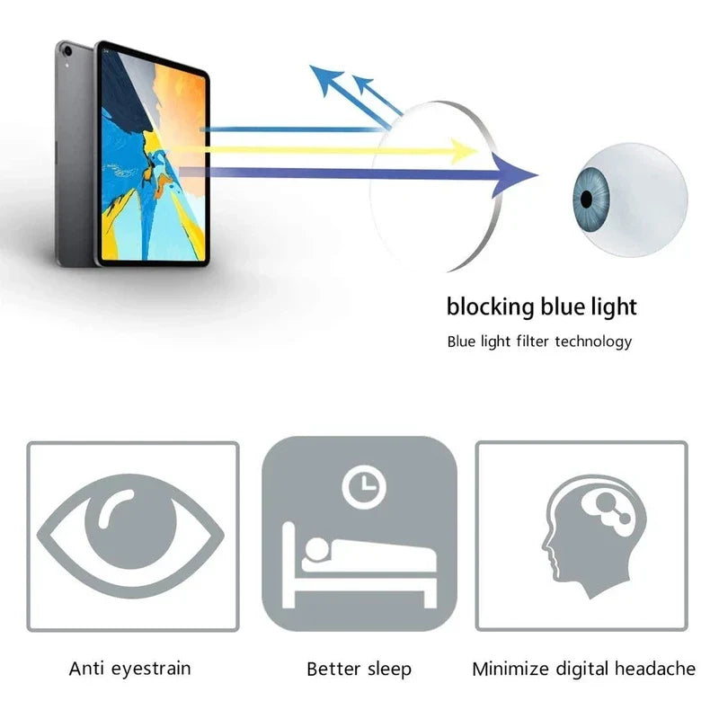 - Blue Light Protection: The lenses block harmful blue light—perfect for long screen time, reducing fatigue and protecting your eyes.